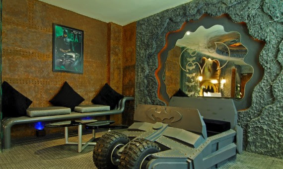 If you've got the money honey, I've got the time. Eden Motel in Kaohsiung City has a room to rent that is all decked out in Batman paraphernalia. For $50 you will get to pretend you are the billionaire Bruce Wayne... for three hours. But totally worth it, right? Wait, did you say only three hours? Why yes, yes I did. This room ain't for sleeping son. This Batcave is for Bat-Lovin. After you're done canoodling with your special someone, the next two hours and fifty-minutes you can enjoy all the room's amenities. Come relax in the Bat-couch, that is modeled after Christopher Nolan's Batmobile, The Tumbler. Enjoy a Bat-flick on the Bat-shaped television set. Gaze upon a movie poster featuring the greatest Batman of all time, Christian Bale. Suck it, Affleck. The room is even equipped with a Bat-Signal skylight. To book your room, or to find out more info head on over to the Eden Motel Website.