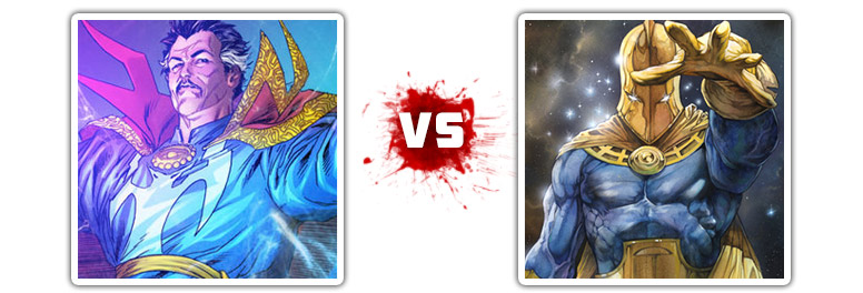 Dr. StrangeGender: Male Height: 6'2" Weight: 180 lbs Eyes: Grey Hair: Black/White Skills: Mastery of magic, genius-level intellect, skilled neurosurgeon and martial artist | Dr. FateGender: Male Height: 6'2" Weight: 197 lbs Eyes: Blue Hair: Blonde Skills: Mastery of magic |